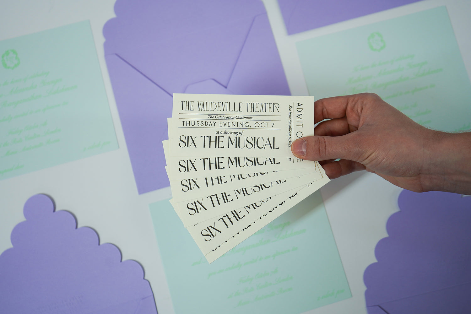 We deliver your finished invitations! For custom invitations, we'll assemble, address, and send your invites directly to your guests. If you add it on, our in-house calligrapher will address your envelopes in this step.